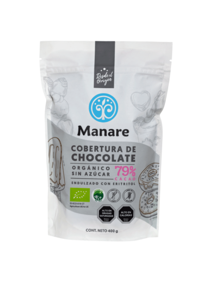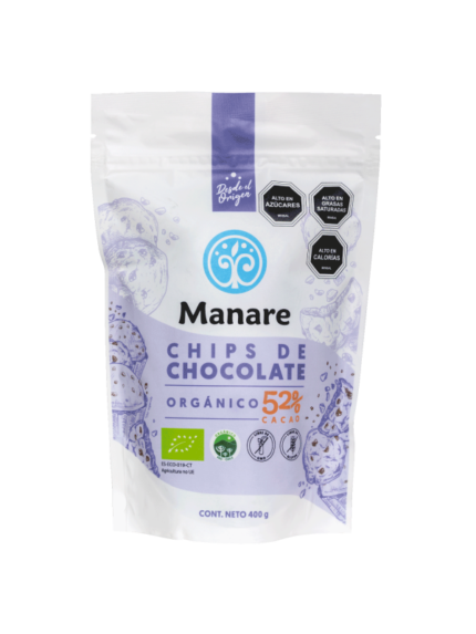 $2.700 – $12.500CHIPS DE CHOCOLATE SIN AZÚCAR 62% CACAO ORGÁNICO 400 GRS. – MANARE